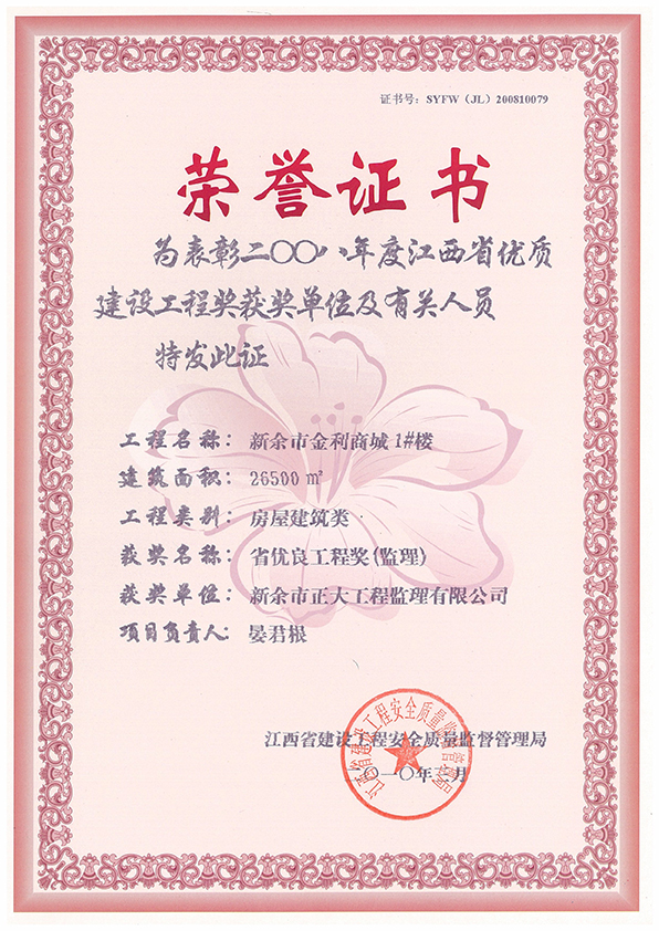新余市正大工程監(jiān)理有限公司依托新余市建筑設(shè)計(jì)院,于1995年11月成立,是新余市開展監(jiān)理工作最早的監(jiān)理單位,本公司具有建設(shè)部核發(fā)的房屋建筑工程甲級監(jiān)理資質(zhì)、市政公用工程乙級監(jiān)理資質(zhì)、國家人防辦核發(fā)的人防工程監(jiān)理乙級資質(zhì)。我公司始終堅(jiān)持“客戶至上、質(zhì)量第一、信守合同”的經(jīng)營理念;追求“為社會創(chuàng)造價(jià)值、為業(yè)主創(chuàng)造效益、為自身謀求發(fā)展”的經(jīng)營宗旨;遵循“守法、誠信、公正、科學(xué)、優(yōu)質(zhì)、高效”的工作原則,以雄厚的技術(shù)力量、完善的管理制度、豐富的監(jiān)理經(jīng)驗(yàn)、良好的企業(yè)信譽(yù)迅速成為我市監(jiān)理行業(yè)的一支新銳力量! 查看更多>>